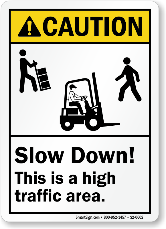 ANSI Caution Sign: Slow Down! This Is a High Traffic Area (Forklift Driver, Loader and Pedestrian Symbols) S2-0602