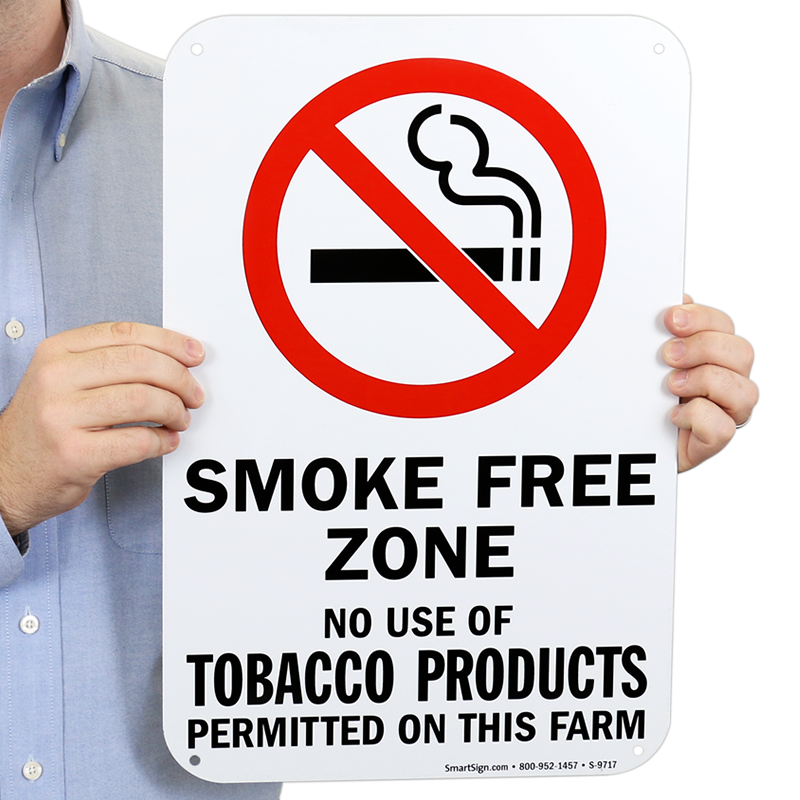 Smoking or chewing can compromise animals, crops, and workers on a farm. This smoke free zone sign will help keep your farm and its products healthy and clean.