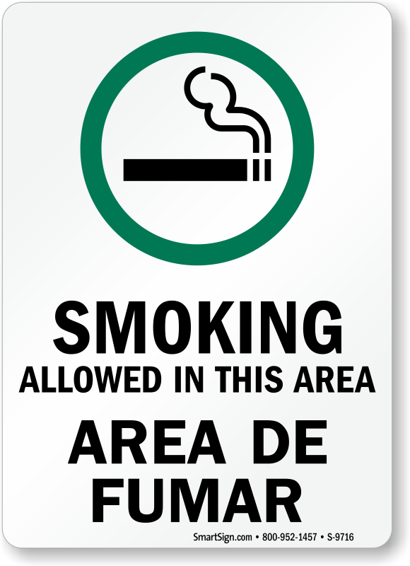 Don't exclude your spanish-speaking clientele; post this bilingual sign to clearly indicate a smoking permitted area in both of the U.S.'s most-understood languages.