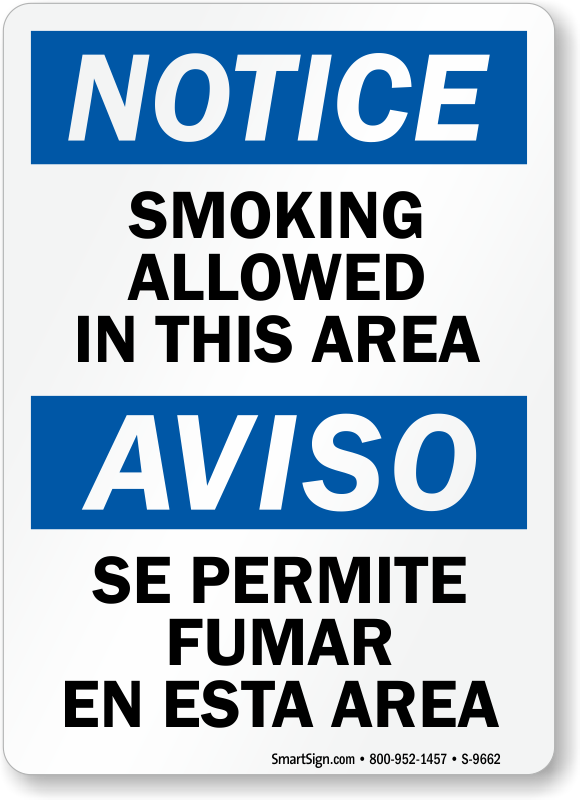 Bilingual OSHA Notice / Aviso Sign: Smoking Allowed In This Area / Se Permite Fumar En Esta Area