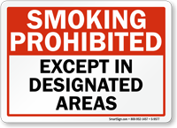 No Smoking Sign: Smoking Prohibited Except In Designated Areas S-9577