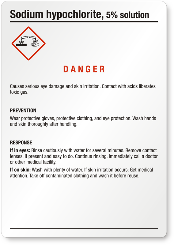 - View more GHS Sodium Hypochlorite labels here.