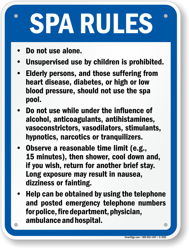 Swimming Pool Sign: New York Spa Rules S-7655 Learn More...