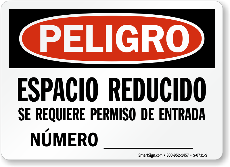 Make sure that your safety message reaches the Hispanic workforce too. Spanish OSHA Danger Confined Space Entry Permit Required Sign also helps you number the confined space in your facility.