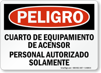 Don't let linguistic difference present a challenge in communicating an important message. Post this Spanish OSHA Danger sign for your Hispanic workforce to notify them of elevator equipment room and that entry is for authorized personnel only.