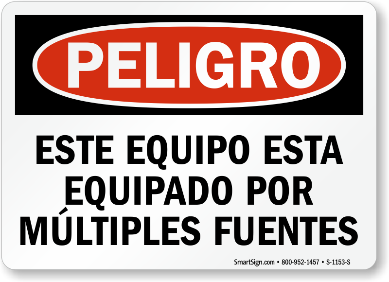 Safety information in Spanish for Hispanic workers will leave no chance of miscommunication. This Spanish OSHA Danger sign informs that the equipment is powered by multiple sources.