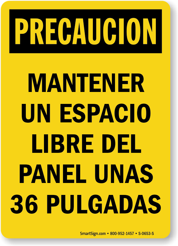 Instruct Hispanic workers with this Spanish OSHA Caution sign to keep at least 36 inches of area clear in front of the electrical panel.
