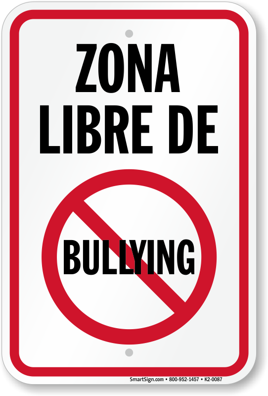 Spanish No Bullying Sign: Zona Libre De With No Bullying Symbol K2-0087 Learn More...