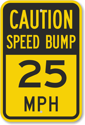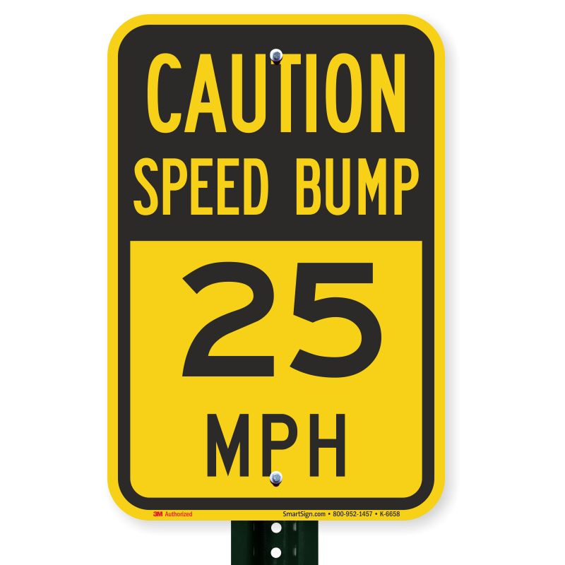 Caution Sign: CAUTION SPEED BUMP 25 MPH K-6658 Learn More...