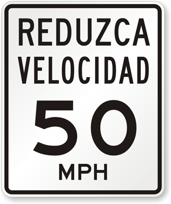 Spanish Traffic Sign: Reduzca Velocidad (Reduce Speed) 50MPH K-7160-50-SP Learn More...