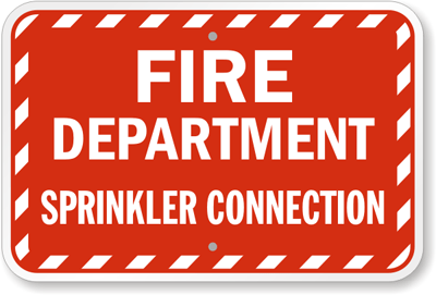 Mark the sprinkler connection as part of your safety program. Post this Fire Department Sprinkler Connection sign to help firemen save time during an emergency. Striped border offers high visibility. Two pre-drilled holes offer quick, hassle-free installation.