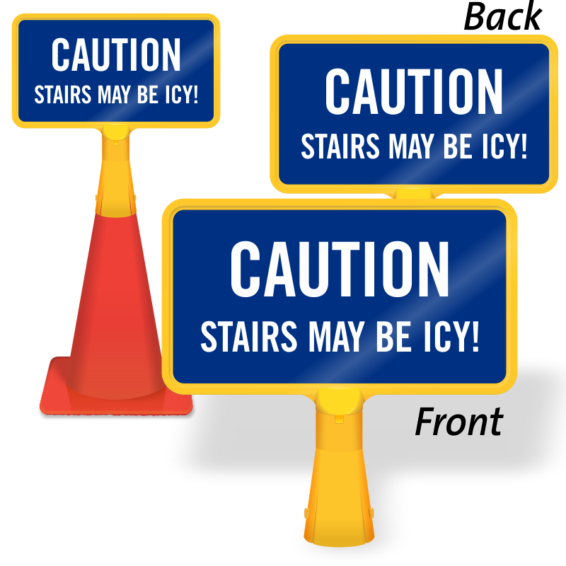 Warn people about the slippery stairs during icy conditions to prevent slipping and falling, with this highly visible no-tip, portable Traffic Cone Sign.