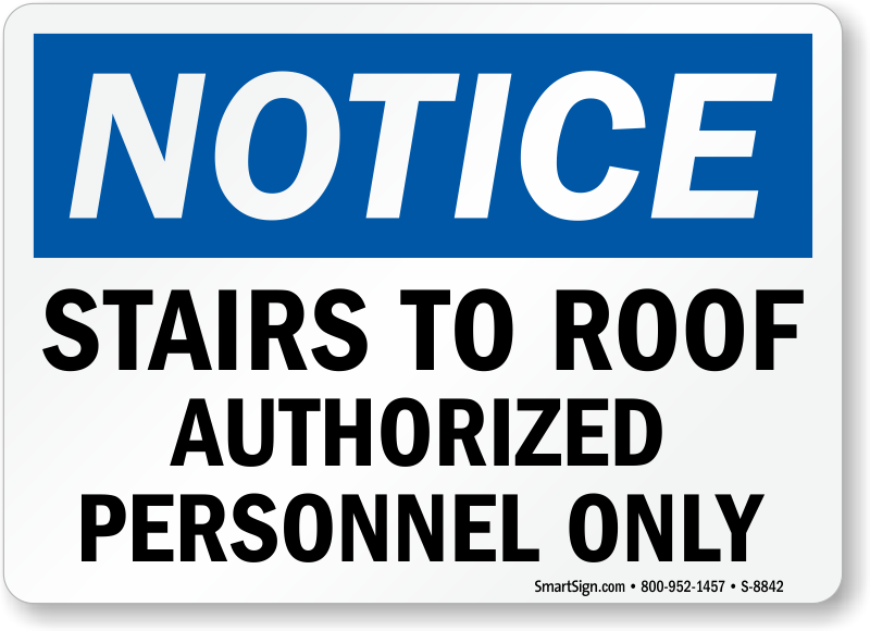 Restrict entry to roof for only authorized personnel only by using this bold sign.