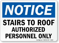 OSHA Notice Sign: Stairs To Roof, Authorized Personnel Only S-8842