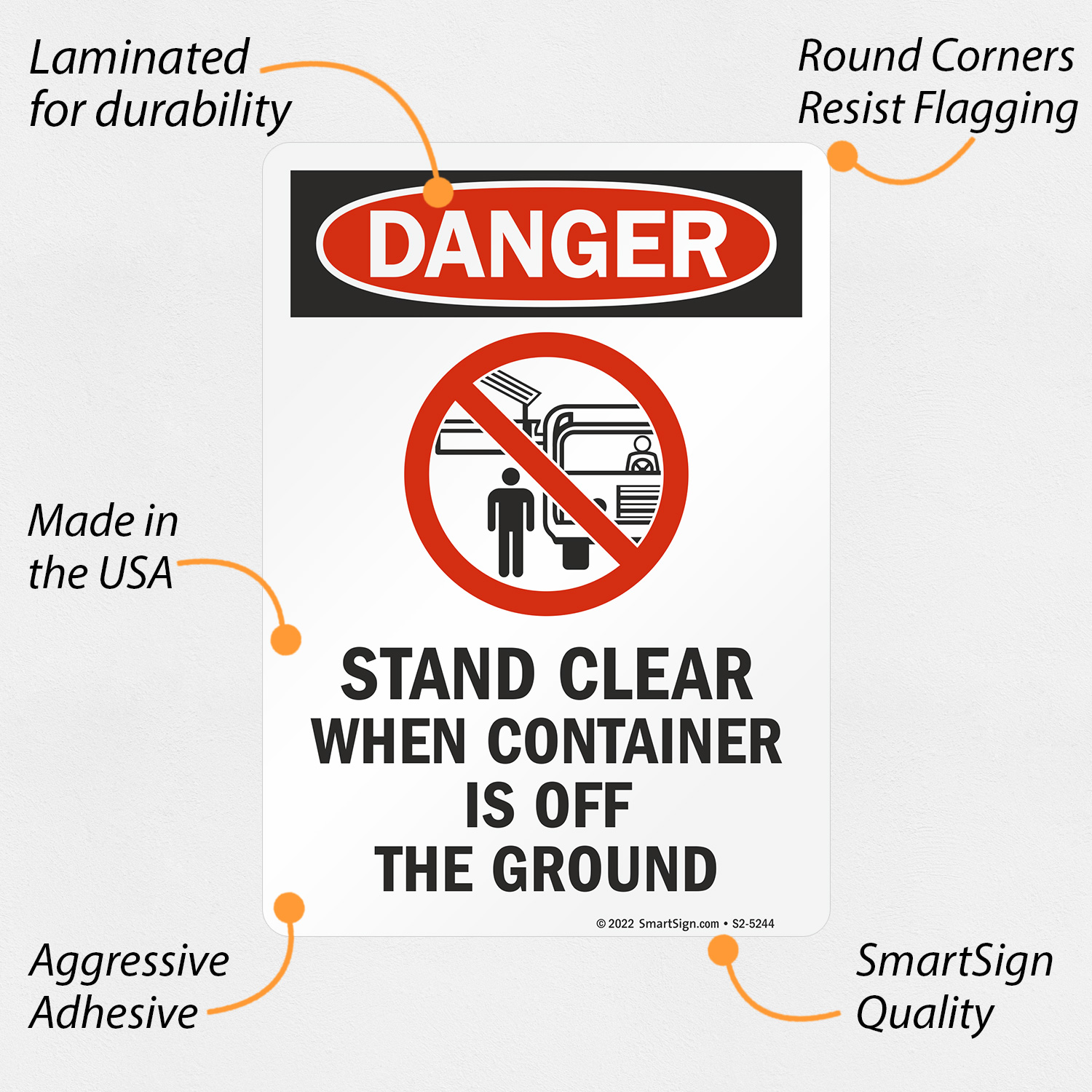 OSHA Danger Sign: Stand Clear When Container Is Off The Ground (With Graphic) S2-5244