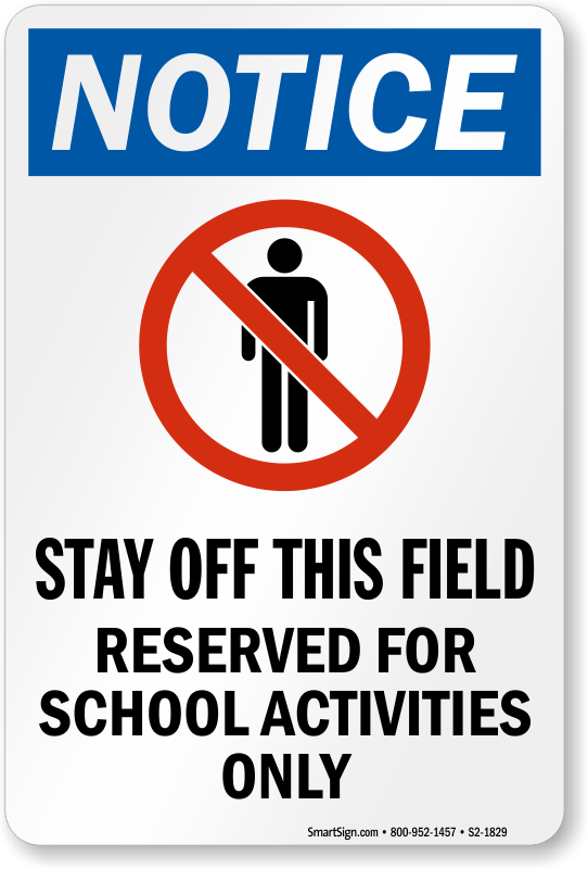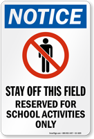 OSHA Notice Field Safety Sign: Stay Off This Field Reserved For School Activities Only S2-1829