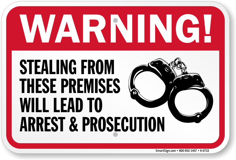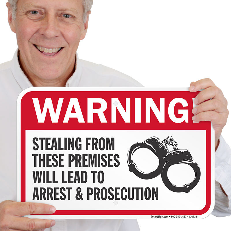 Secure your property and give a warning to thieves and criminals of the arrest, if caught stealing things from the premises. Handcuffs graphic makes this Warning sign easily comprehensible.
