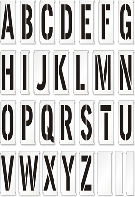 - Interlocking system spaces letters for great legibility. 40-piece letter stencil kit features A through Z plus an extra A, E, I, L M, N, O, P, R, S, T with one spacer and two end pieces.