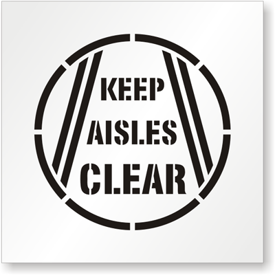- Keep your Aisles Clear. Each 24" by 24" stencil includes a 18" diameter "KEEP AISLES CLEAR" image. Also, 48" by 48" stencils feature a 36" image.