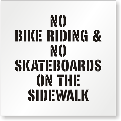 Keep the sidewalk safe with this No Bike Riding & No Skateboards On The Sidewalk Stencil.