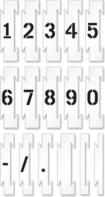 Made from 1/16" thick nonabsorbent polyethylene our Number Stencils are the fastest, hassle-free way to get that paint job done! Perfect for parking lots, airports, loading docks, boats, government facilities, military bases, garbage, cargo or shipping containers, these reusable stencils won't degrade like paper oil boards used by competitors.