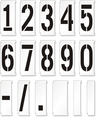 Made from 1/16" thick nonabsorbent polyethylene our Number Stencils are the fastest, hassle-free way to get that paint job done! Perfect for parking lots, airports, loading docks, boats, government facilities, military bases, garbage, cargo or shipping containers, these reusable stencils won't degrade like paper oil boards used by competitors.