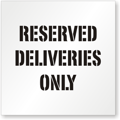 Make it easy for drivers to drop off their product by letting them know where to go. This Reserved Deliveries Only stencil helps drivers know where they can deliver.