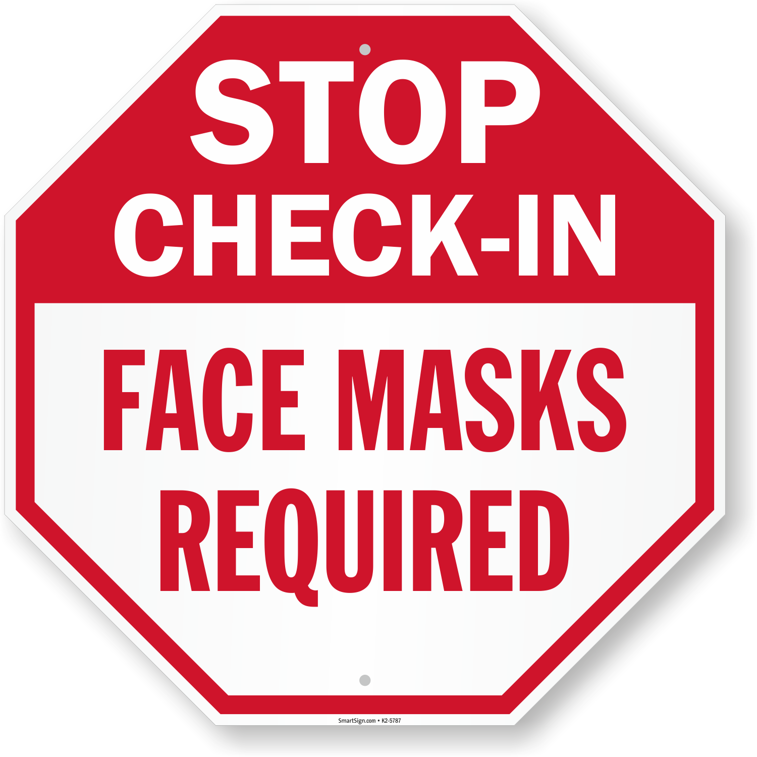 Face Masks Required Octagon Sign: Stop Check-In, Face Masks Required K2-5787 Learn More...