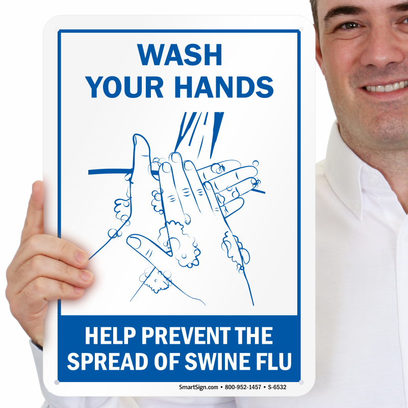 Wash Hands Sign: Help Prevent The Spread Of Swine Flu