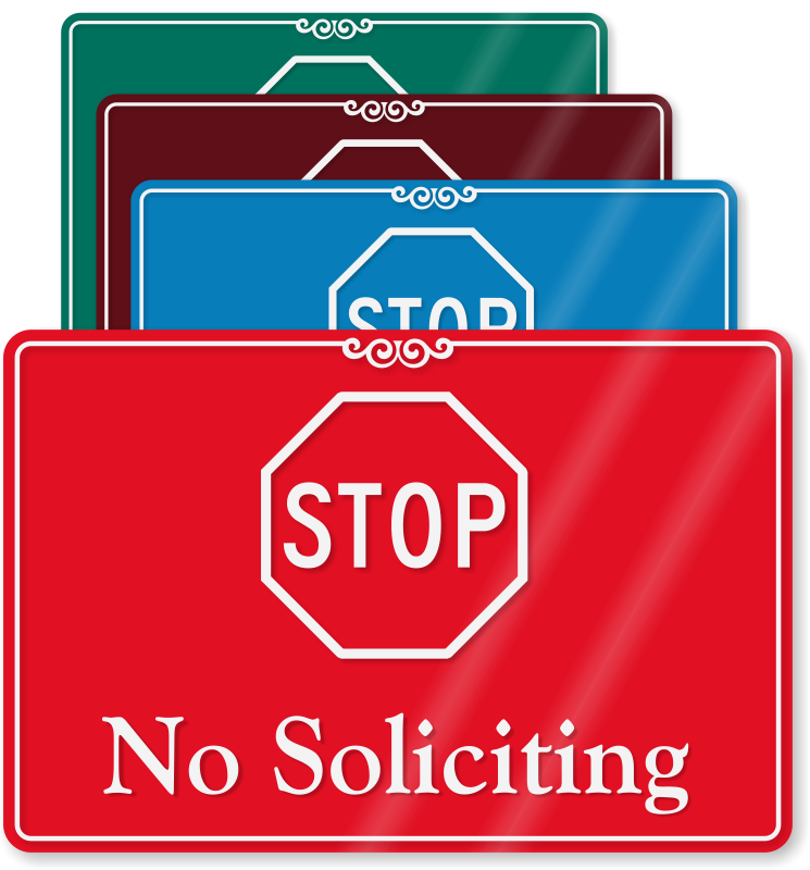 Prohibit soliciting in your premises with this Showcase Wall sign. Durable materials, architectural subsurface print, a charming border, and a choice of background colors make this product a must-have for your facility.