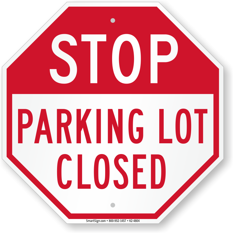 Parking Lot Sign: Stop - Parking Lot Closed Learn More...