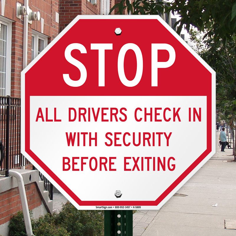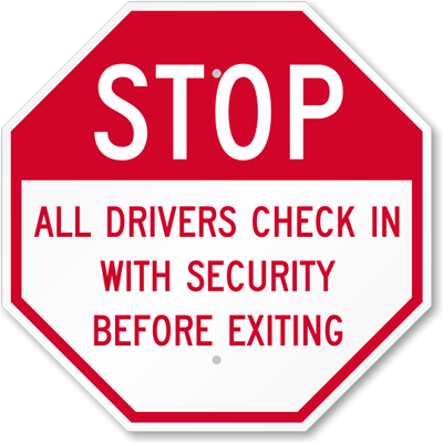 Stop Sign: All Drivers Check In With Security Before Exiting K-5809 Learn More...