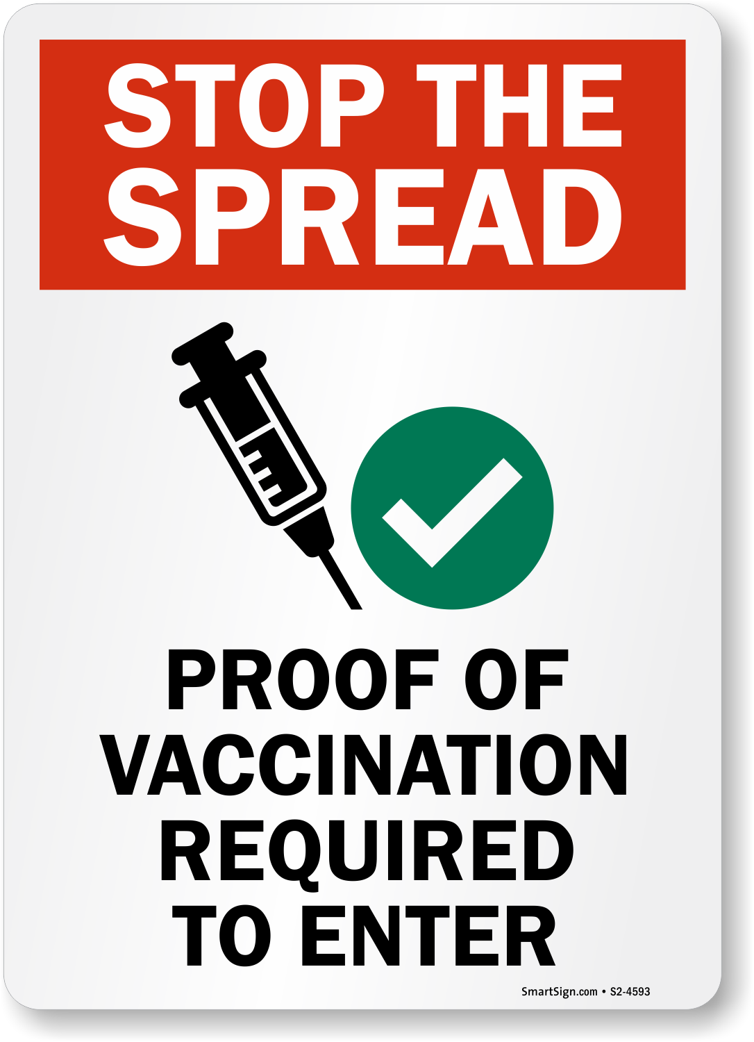 This proof of vaccination required sign is ideal for offices, events, hospitals, universities, retail and industrial settings.
