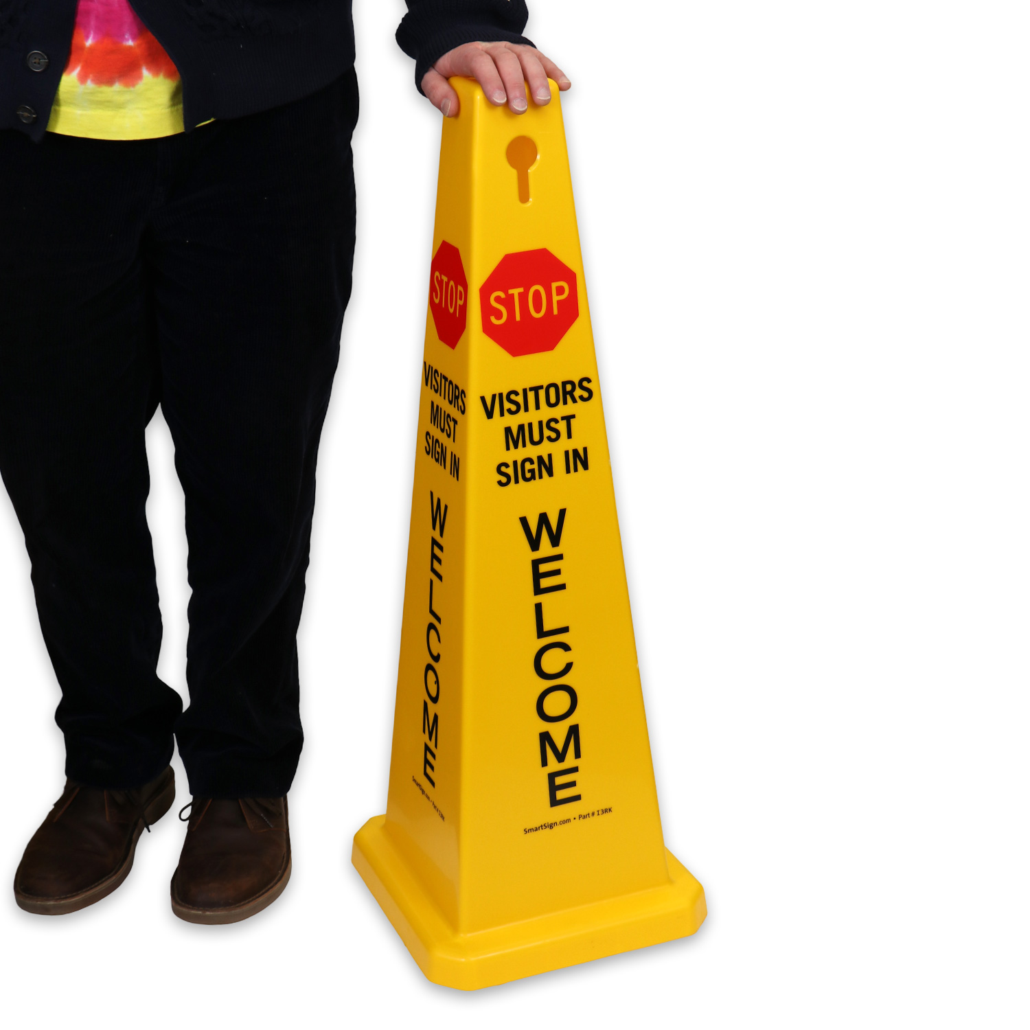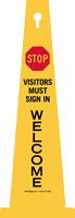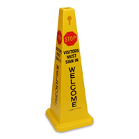 360Boss 4-sided Safety Cone Sign: Stop Visitors Must Sign In Welcome