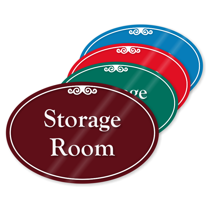 Post this eye-catching oval designer sign to mark the storage room.