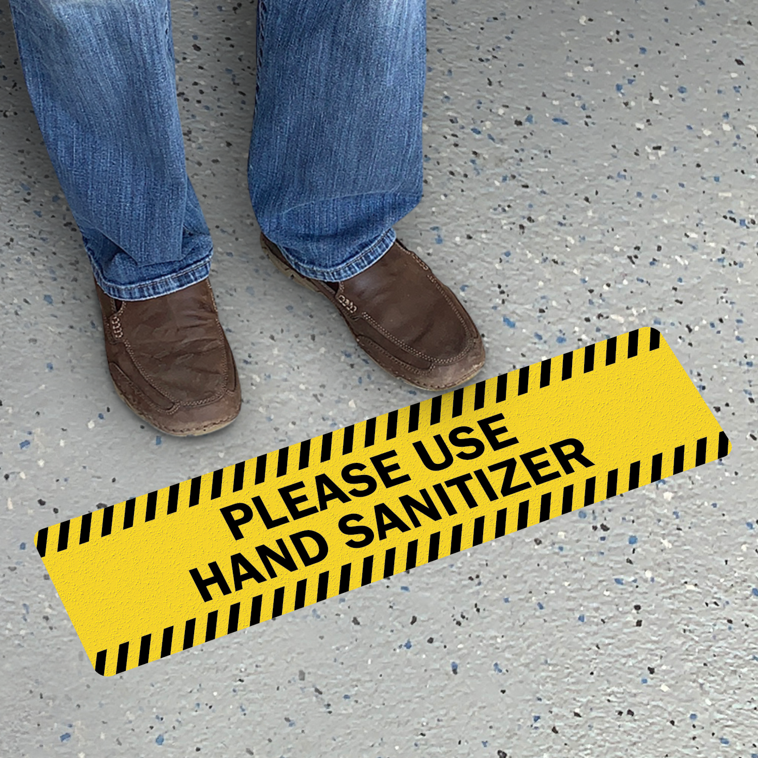 Promote the use of hand sanitizers and do your part in stopping the spread. Use our highly visible floor sign that has permanent adhesive backing.