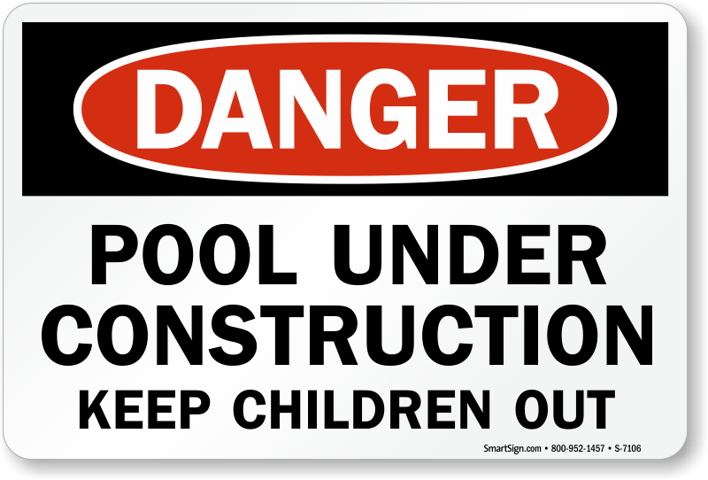 Pool Danger Sign: Pool Under Construction Keep Children Out S-7106 Learn More...