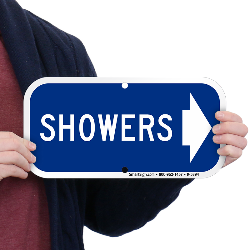 Swimming Pool Sign: Showers With Right Arrow K-5394 Learn More...