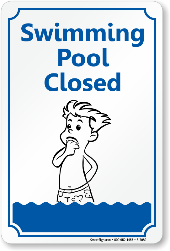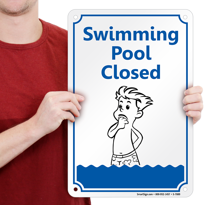 Use a "Swimming Pool Closed" sign. Signs work - and they never stop working. This bold swimming pool sign gets your message across.