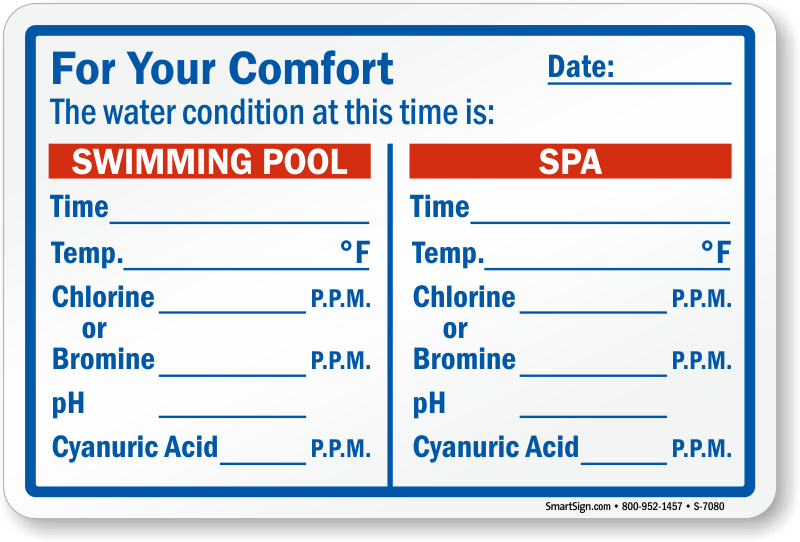 Swimming Pool Sign: For your Comfort Water Condition At This Time Is _______ S-7080 Learn More...