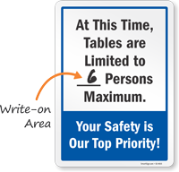 Notify people about your facility's limited seating by simply writing down the maximum occupancy per table.