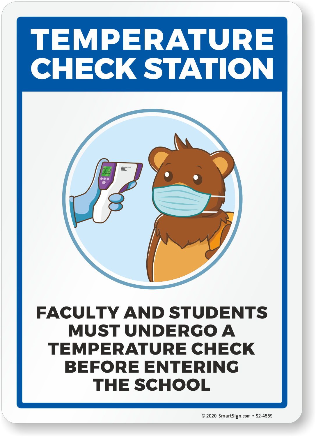 Kids-friendly signs motivate kids to perform a particular action like getting their body temperature checked before entering the school.