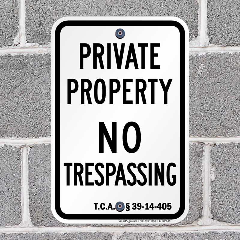 Tennessee No Trespassing Sign: Private Property – TCA § 39-14-405 K-1727-TN Learn More...