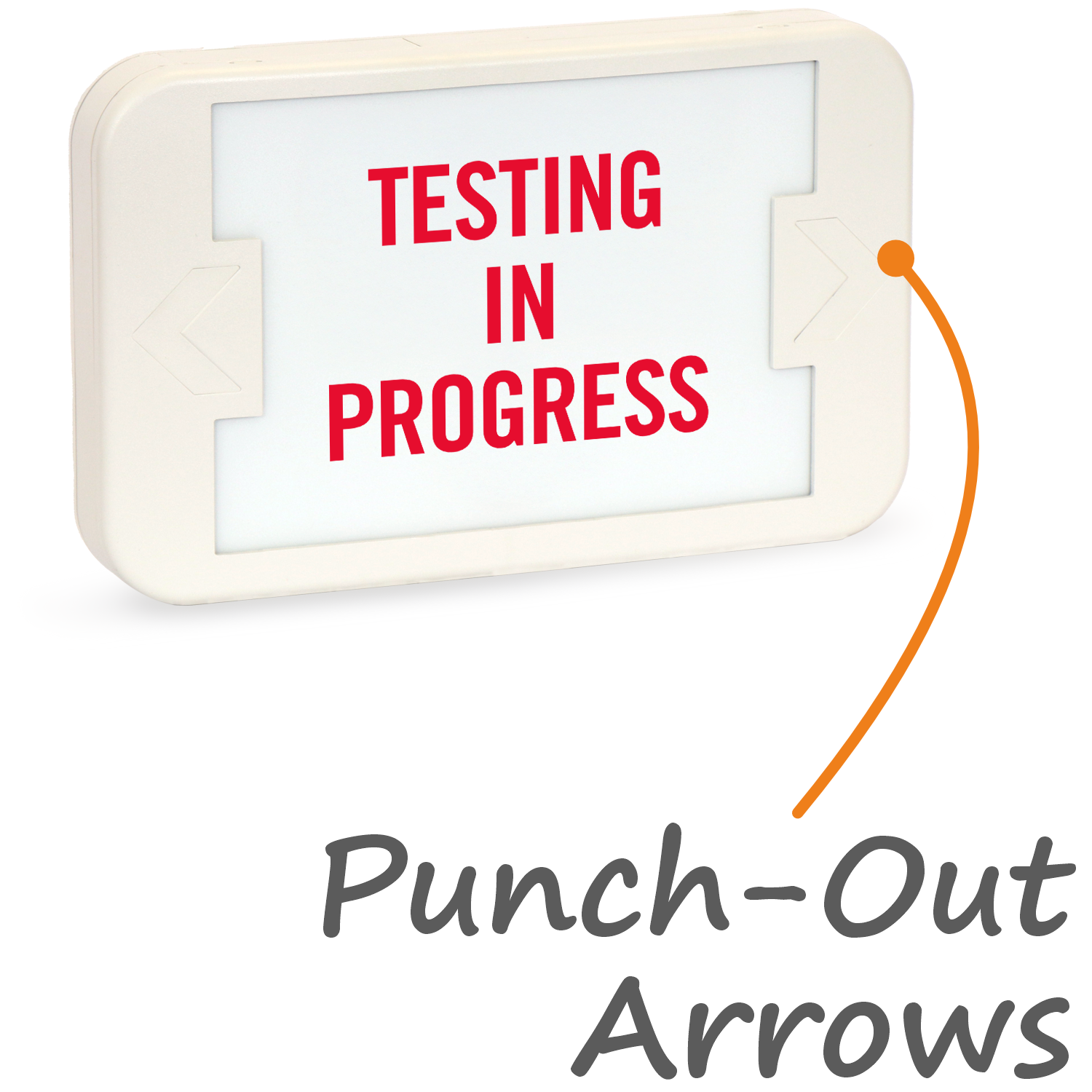 LED Exit Sign with Battery Backup: Testing in Progress - Red Lettering, White Background EXIT-1028