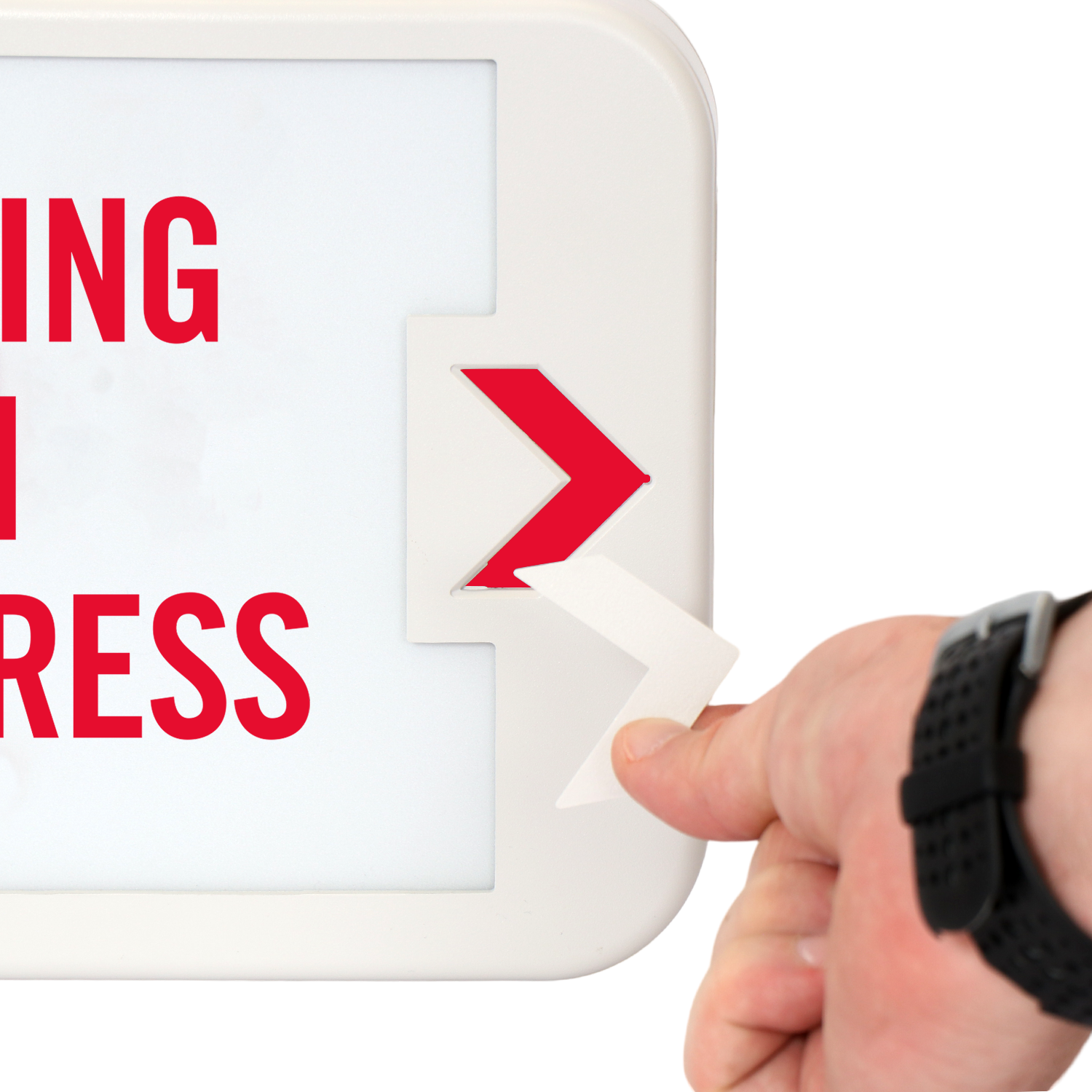 5VA flame retardant thermoplastic LED sign comes with snap-on directional arrows.