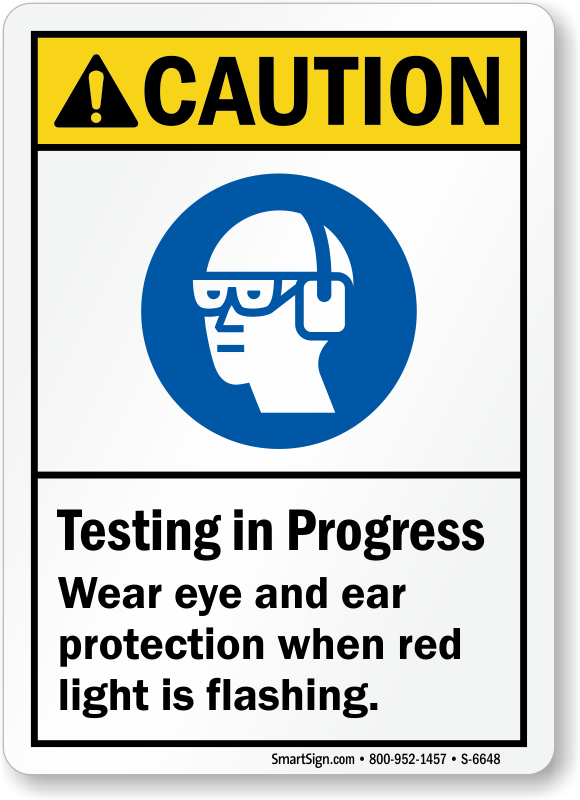 ANSI Caution Sign: Testing In Progress - Wear Eye And Ear Protection When Red Light Is Flashing S-6648