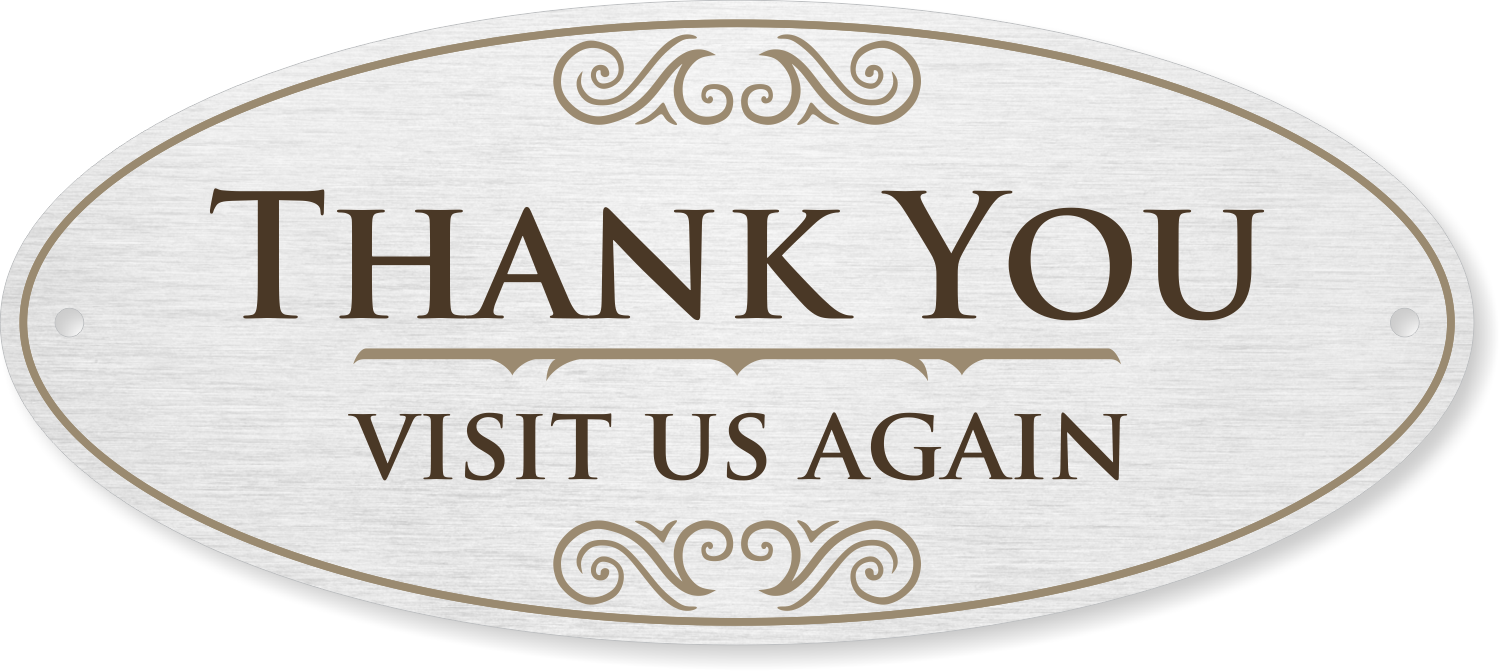 DiamondPlateâ„¢ Door Sign: Thank You, Visit Us Again DP-0169