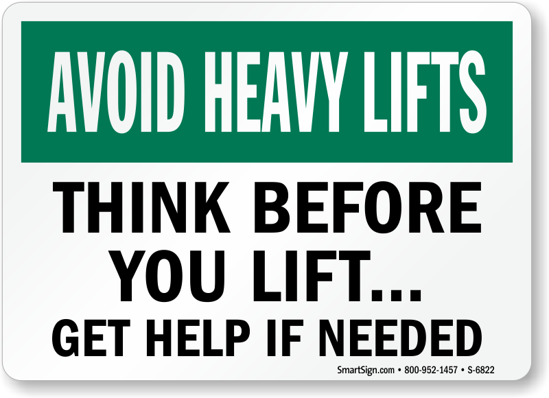 Small tips like these will show your concern towards safety of workers. Mount this sign and ask them to avoid heavy lifts or ask for help in case of need.
