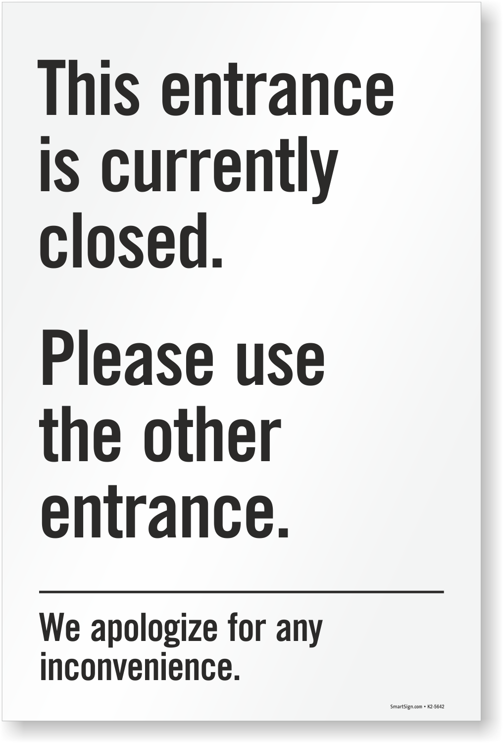 Use this sign to simply notify people of the closed entrance.