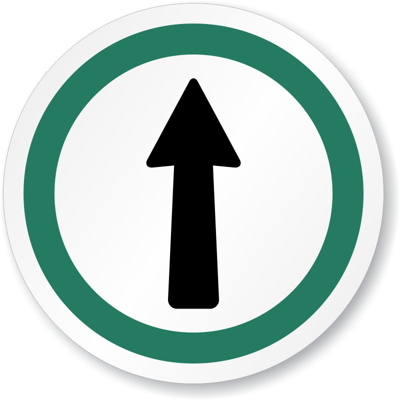 This ISO Circle Sign with This Way Out Symbol is a clear, understandable way to communicate your message.